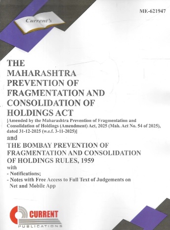 This authoritative bare act compilation presents The Maharashtra Prevention of Fragmentation and Consolidation of Holdings Act along with the Bombay Prevention of Fragmentation and Consolidation of Holdings Rules, 1959, updated to include the latest amendments notified in 2025. The publication is meticulously updated, making it an essential reference for matters involving land fragmentation, consolidation, agricultural holdings, and rural land governance in Maharashtra.