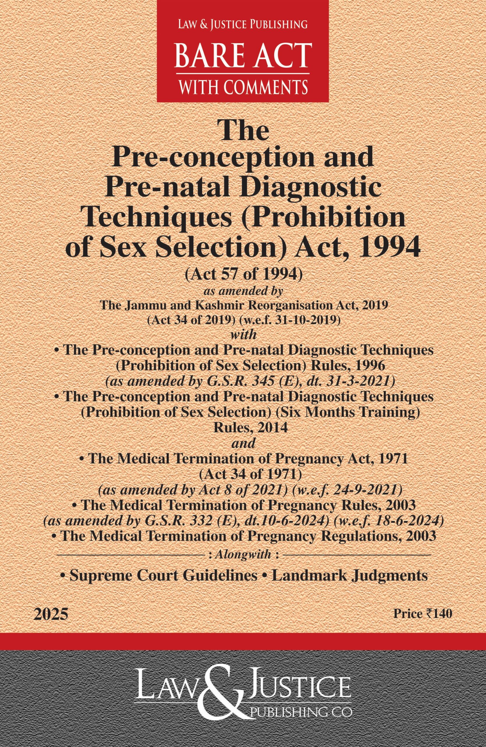 Bare Act: Pre-conception and Pre-natal Diagnostic Techniques (Prohibition of Sex Selection) Act, 1994 (as amended by Act 34 of 2019) with Rules along with Medical Termination of Pregnancy Act, Rules & Regulations.
