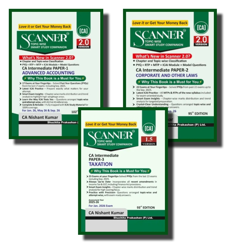 Shuchita Prakashan’s CA Intermediate Group I Combo Scanner for CA Final Jan. 26, May 26 & Sep. 26 Exam.