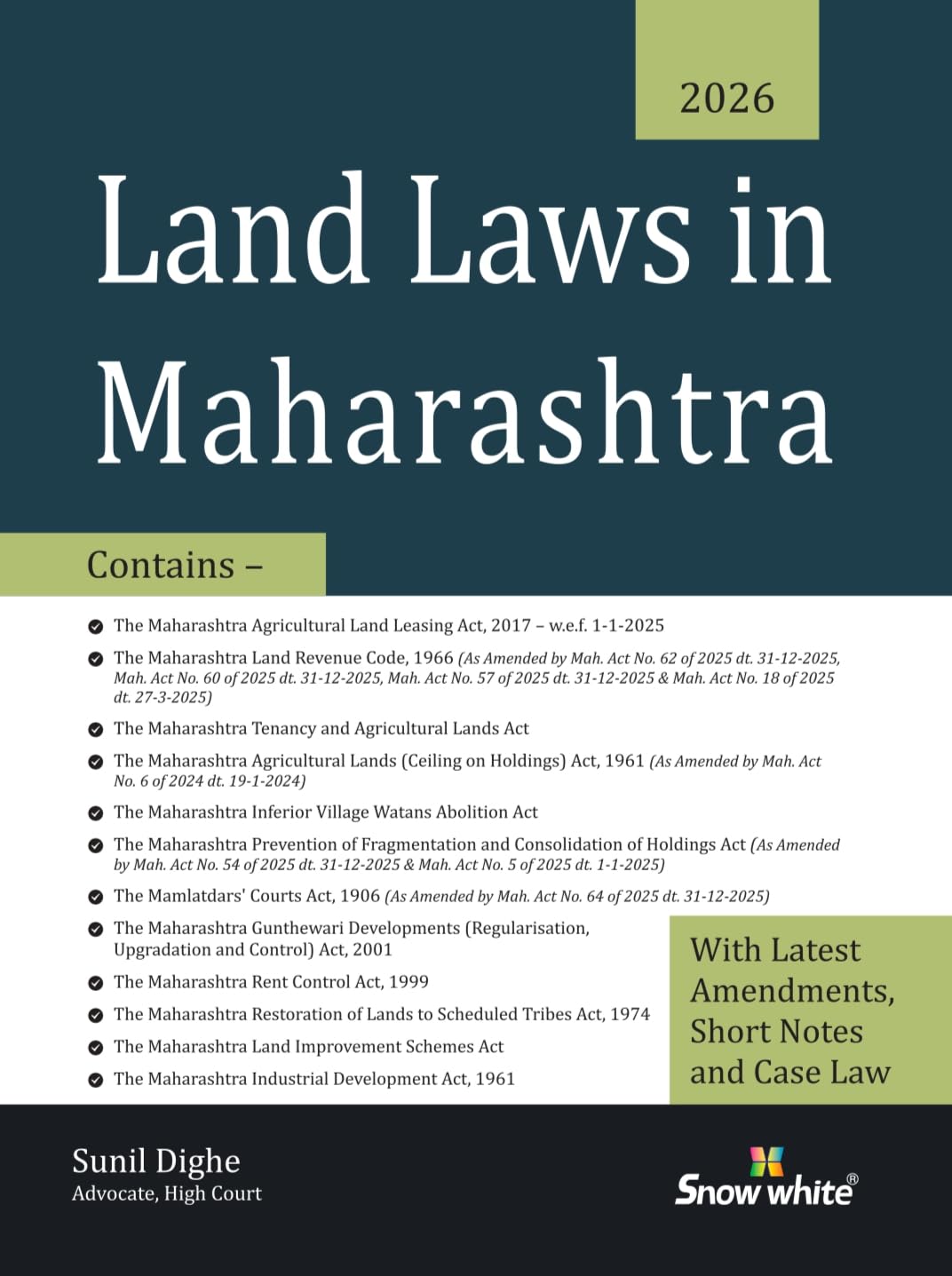 Snow White Publication’s Land Laws in Maharashtra by Adv. Sunil Dighe [Edn. 2025]