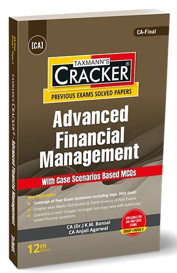 Advanced Financial Management | CRACKER with Case Scenarios Based MCQs for—CA Final – Group I | Paper 2 is a meticulously designed study companion to assist CA Final candidates for their upcoming Jan./May 2026 attempts. This book consolidates the nuances of advanced financial concepts— from capital budgeting and portfolio management to complex derivatives and international finance—into a practice-oriented framework. It highlights past exam trends (including the Sept. 2025 exam), integrates sub-topic-wise questions with additional solved practice problems, and provides a dedicated chapter for case scenario-based MCQs.