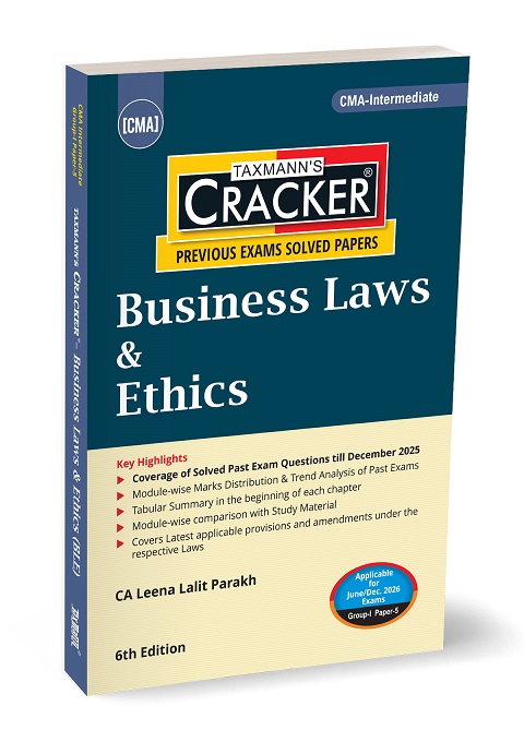 Business Laws & Ethics | CRACKER is a comprehensive exam-oriented resource meticulously designed for CMA Intermediate students preparing for Group 1 – Paper 5. This book serves as an indispensable study and revision guide, combining exhaustive coverage of the syllabus with systematically solved previous exam papers (up to December 2025), extensive trend analysis, and a strong emphasis on conceptual clarity, exam strategy, and ethical grounding.