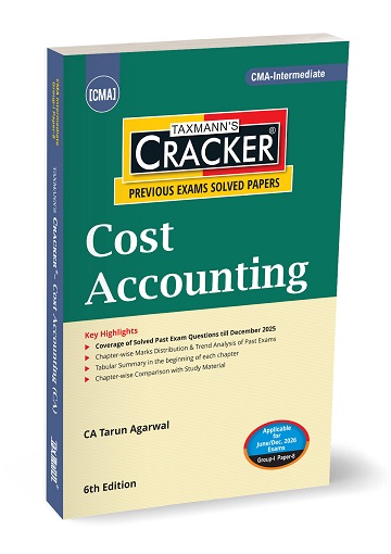 Cost Accounting | CRACKER is a comprehensive, exam-oriented practice and revision resource meticulously designed for CMA Intermediate students preparing for Group I | Paper 8 (Cost Accounting). The book functions as a strategic exam companion, combining exhaustive coverage of solved past examination questions (up to December 2025) with chapter-wise marks distribution, detailed trend analysis, and structured alignment with the CMA Study Material. It is conceived to strengthen numerical accuracy, conceptual clarity, and exam-oriented application of cost accounting principles, enabling students to maximise performance in the upcoming examinations.