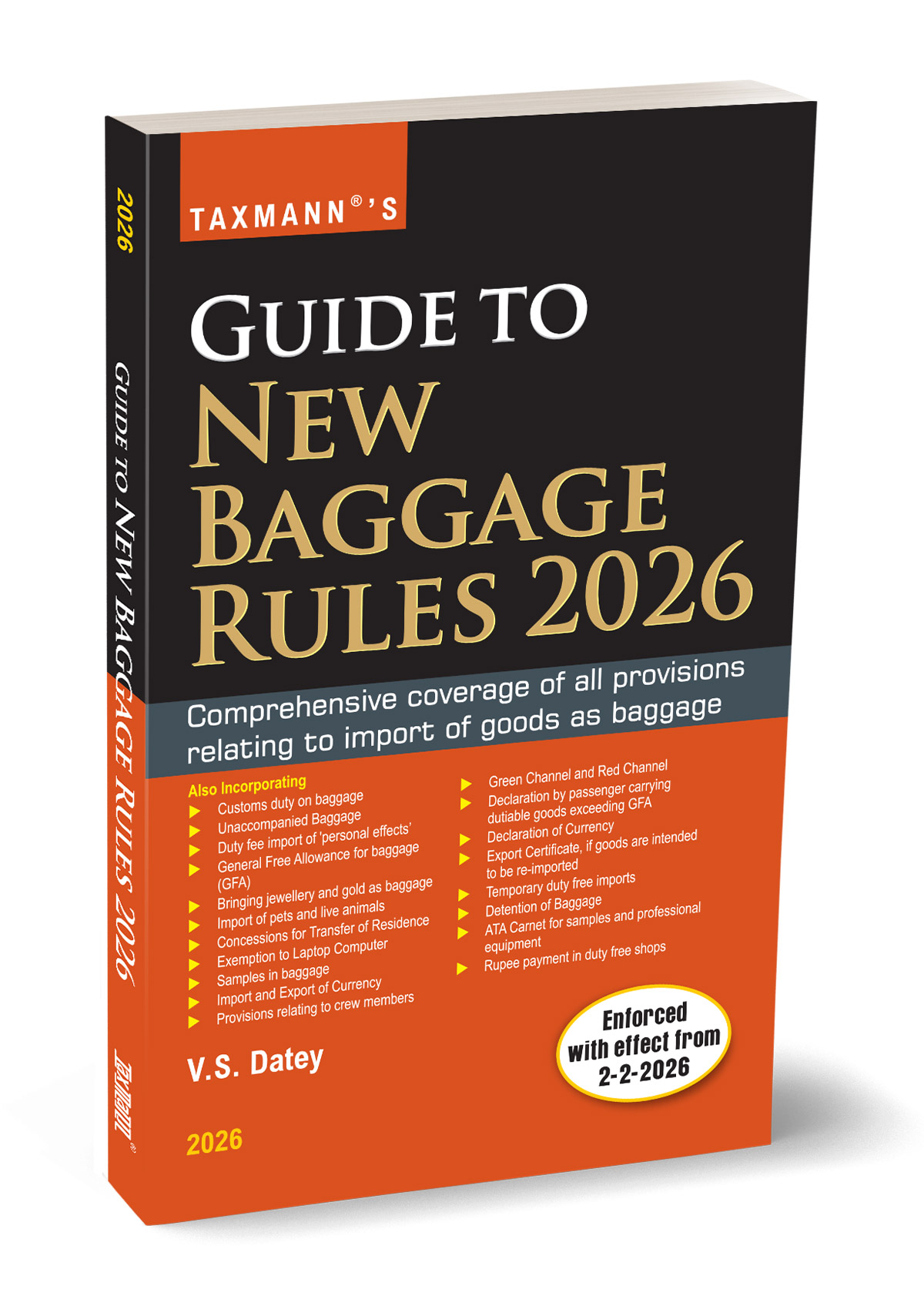 Guide to New Baggage Rules 2026 is a comprehensive, implementation-ready and statute-backed handbook that explains India’s revamped passenger baggage regime introduced through the Baggage Rules 2026 and the Customs Baggage (Declaration and Processing) Regulations 2026, both enforced with effect from 2nd February 2026. The book is designed to translate the new baggage framework into a clear, operationally usable system—covering eligibility-based duty-free allowances, duty computation, valuation, declaration architecture, Green/Red Channel procedures, detention and disposal processes, and compliance consequences under the Customs Act. The publication recognises that baggage is not processed like normal imports and therefore begins by building the legal and procedural logic of baggage as a special customs category. It explains the statutory foundation for baggage under the Customs Act 1962—including declaration by the owner of baggage, determination of the relevant date for duty and valuation, bona fide baggage exemptions, temporary detention and return of goods, and the power of CBIC to frame regulations for baggage processing. It further clarifies what constitutes baggage (including unaccompanied baggage) and the practical boundaries of the baggage framework, as well as general prohibitions and restrictions that routinely impact passengers (currency controls, narcotics, wildlife products, endangered-species articles, pets and live animals, etc.).