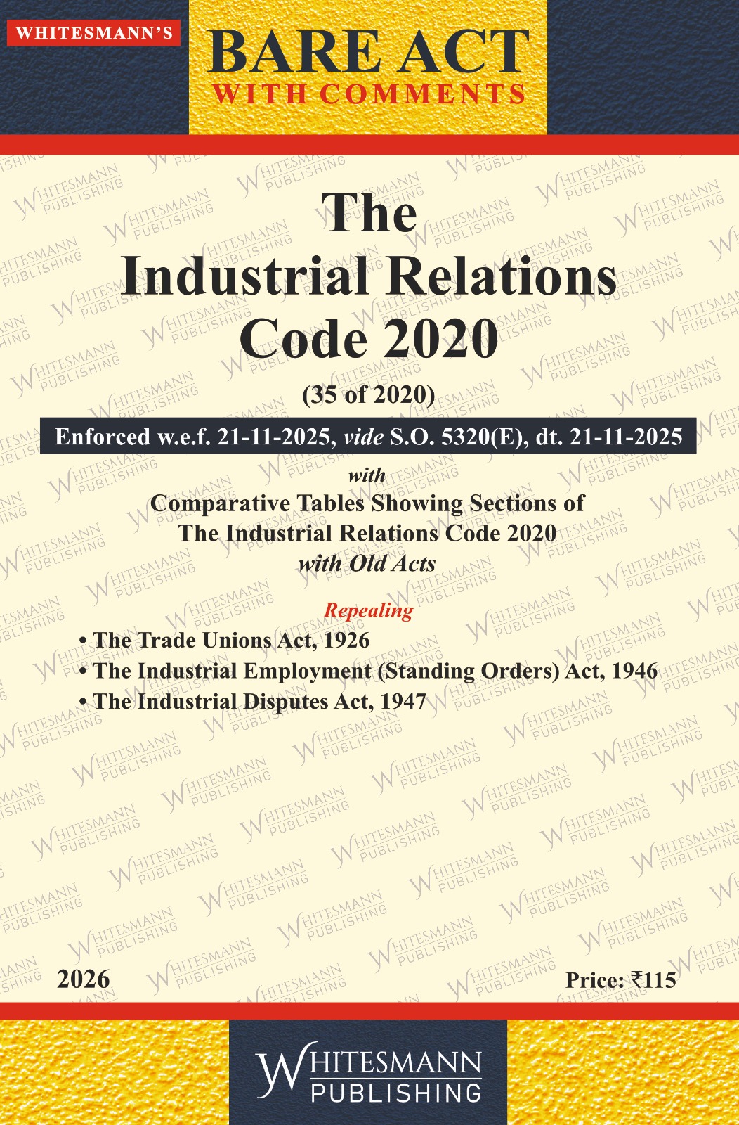 Industrial Relations Code, 2020 consolidates and amends the laws in India relating to trade unions, conditions of employment in industrial establishment or undertaking, investigation and settlement of industrial disputes. The code combines and simplifies 3 Central Labour Laws.